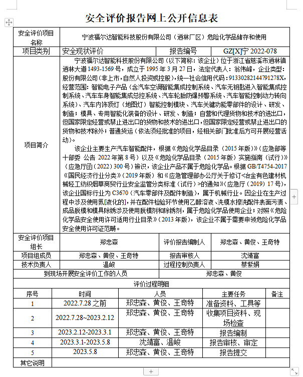 GZ[X]寧2022-078寧波福爾達(dá)智能科技股份有限公司(逍林廠區(qū))危險(xiǎn)化學(xué)品儲(chǔ)存和使用