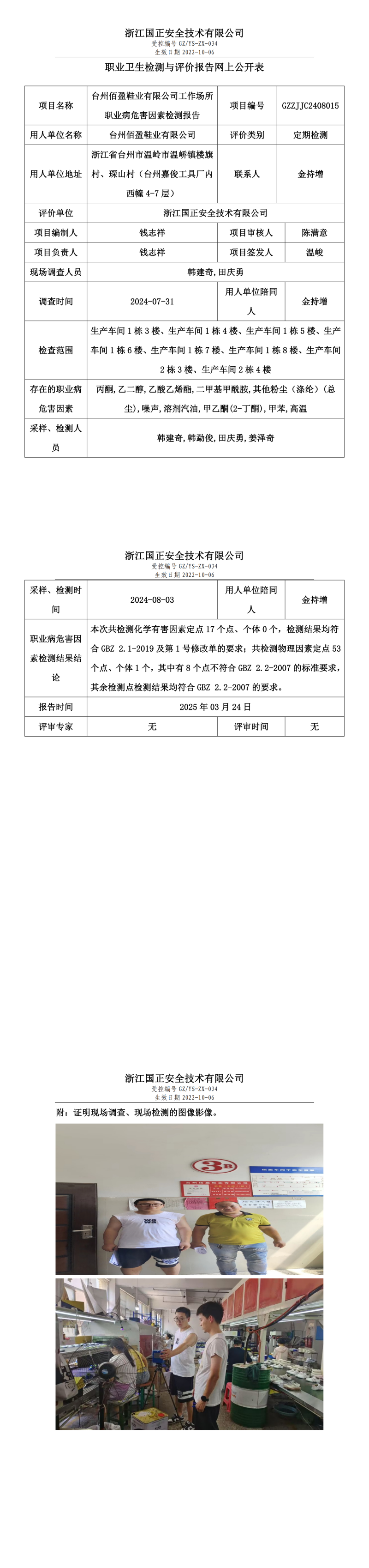 臺(tái)州佰盈鞋業(yè)有限公司工作場(chǎng)所職業(yè)病危害因素檢測(cè)報(bào)告網(wǎng)上公開信息表